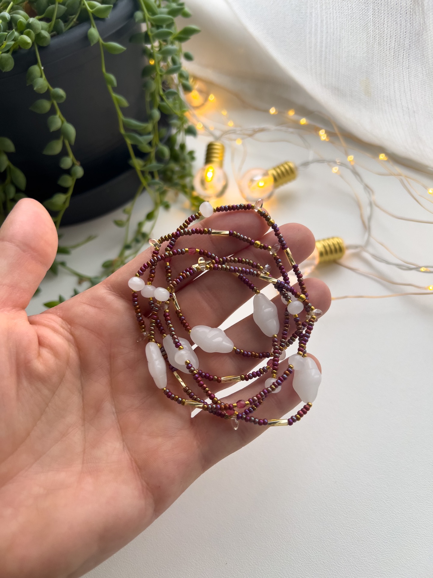 Ústředním motivem je korálek ve tvaru mraku, a nechybí ani průhledná skleněná kapka, která dodává šperku jemnost a originalitu.