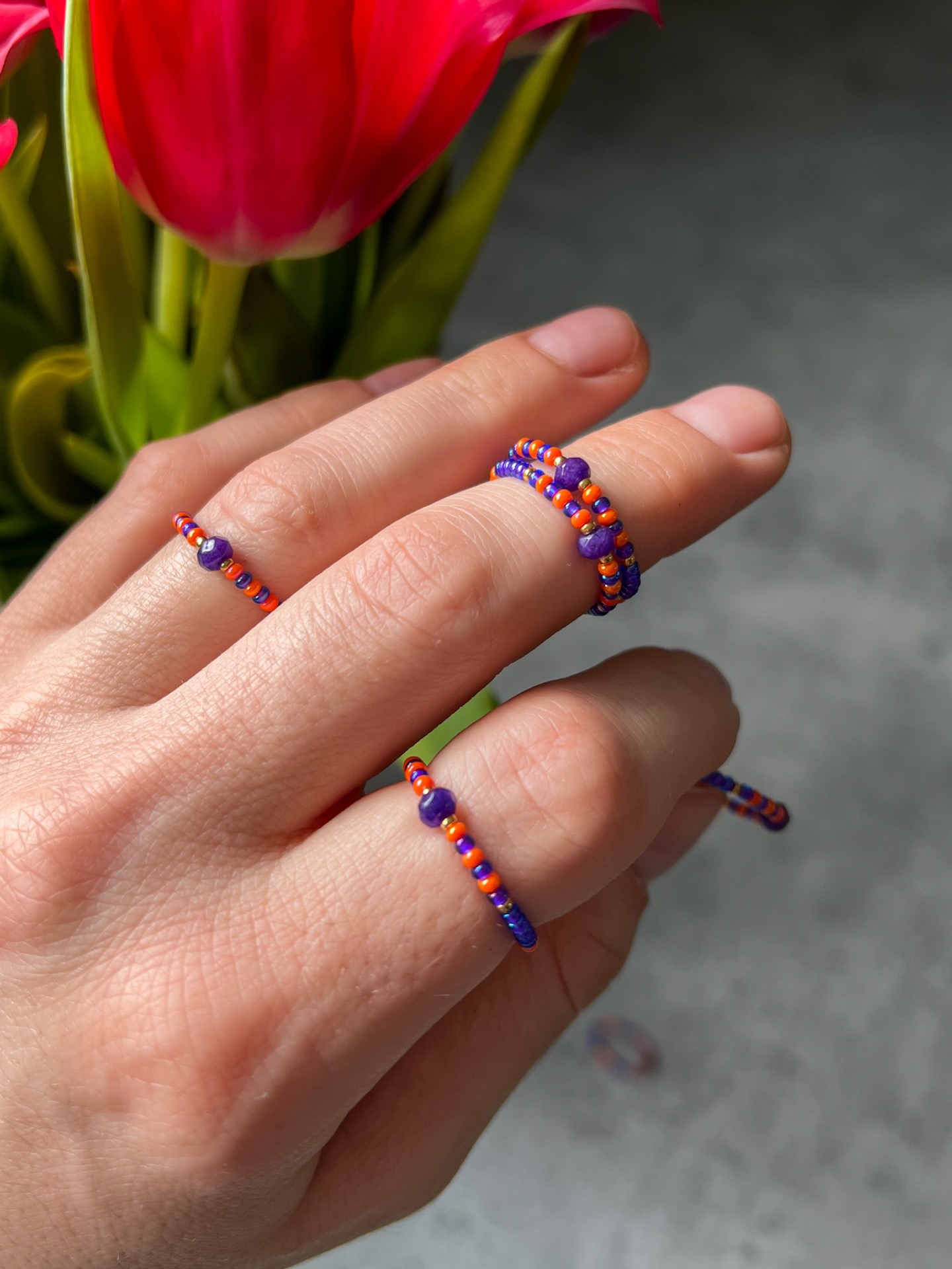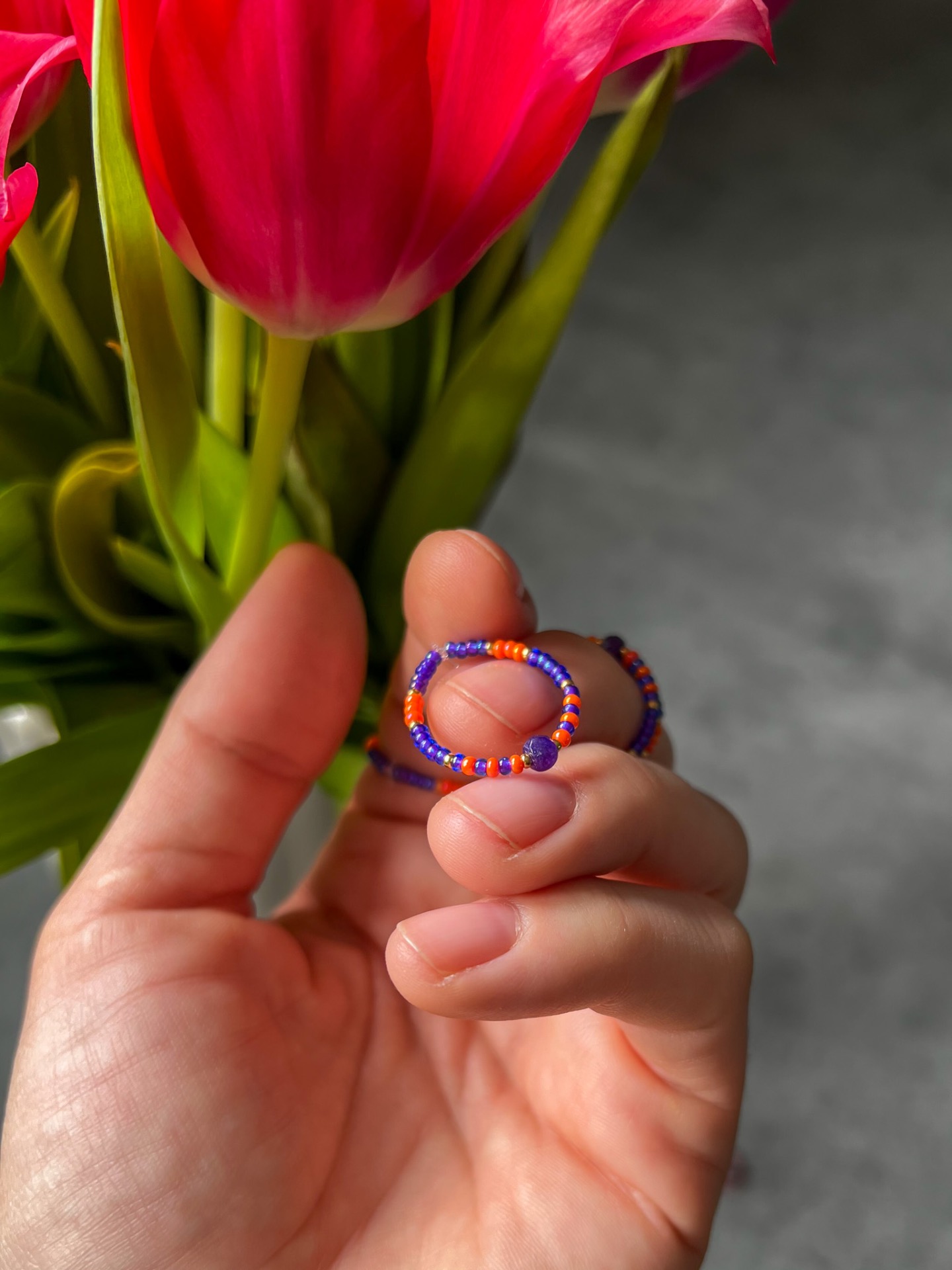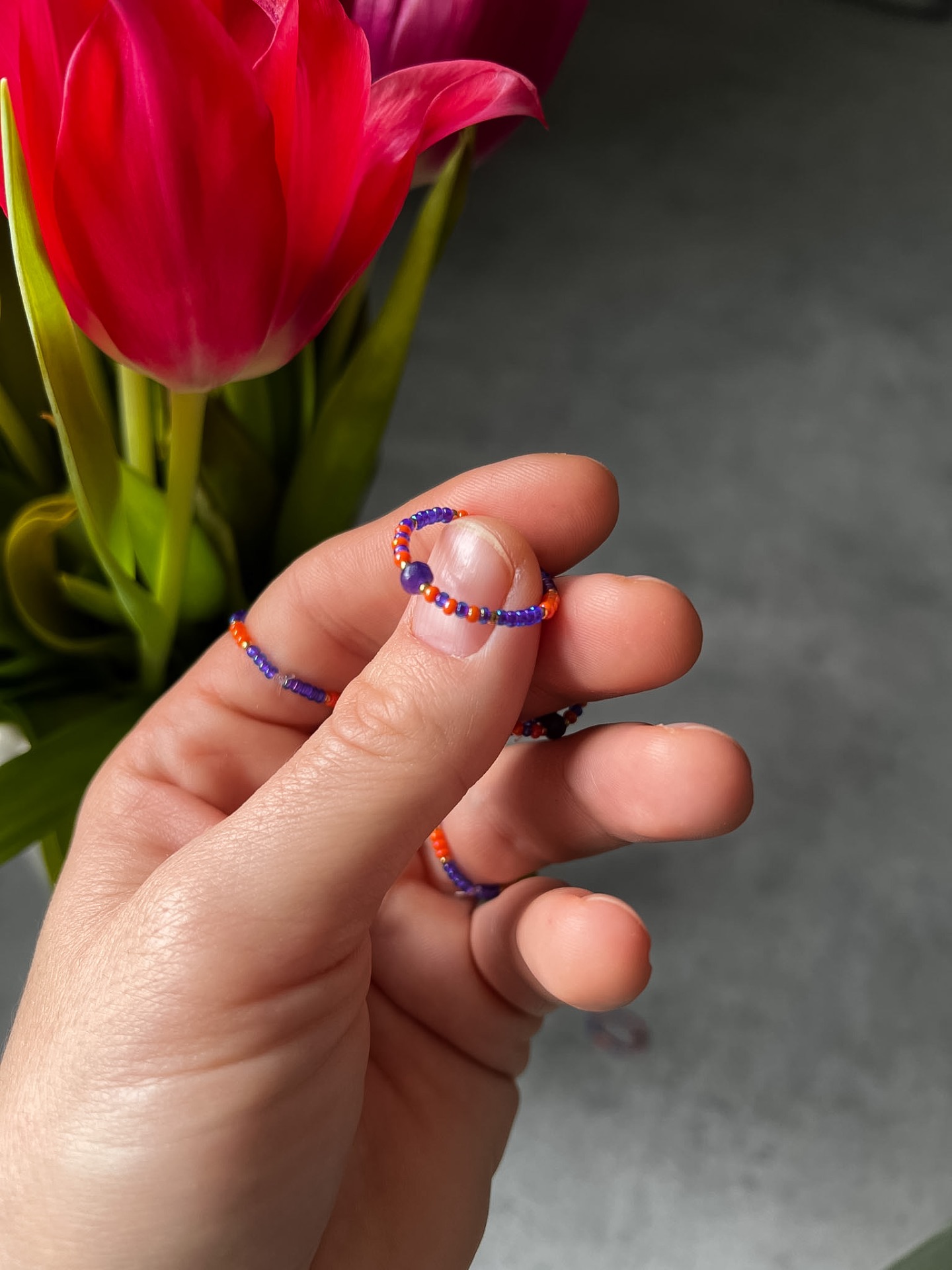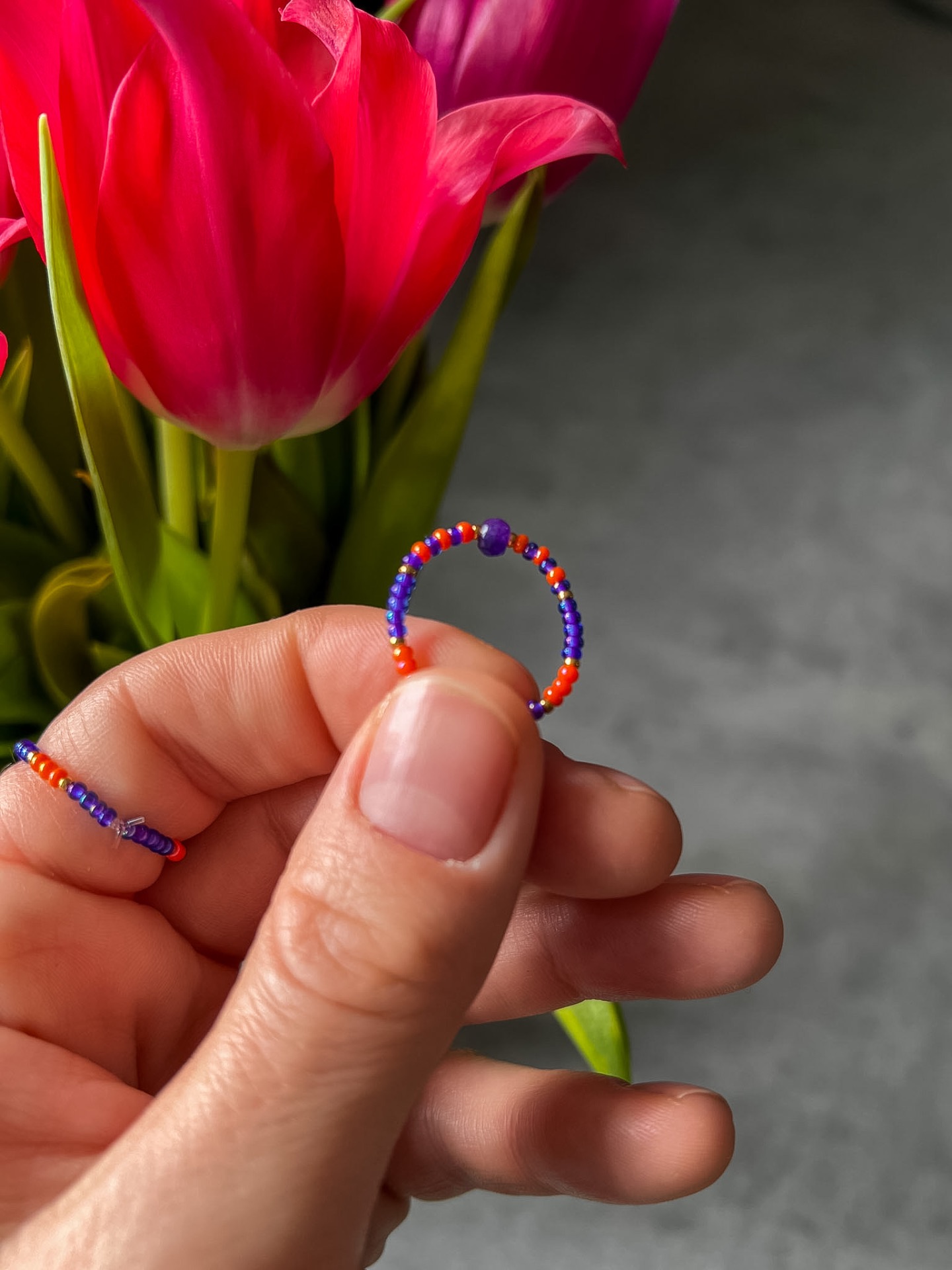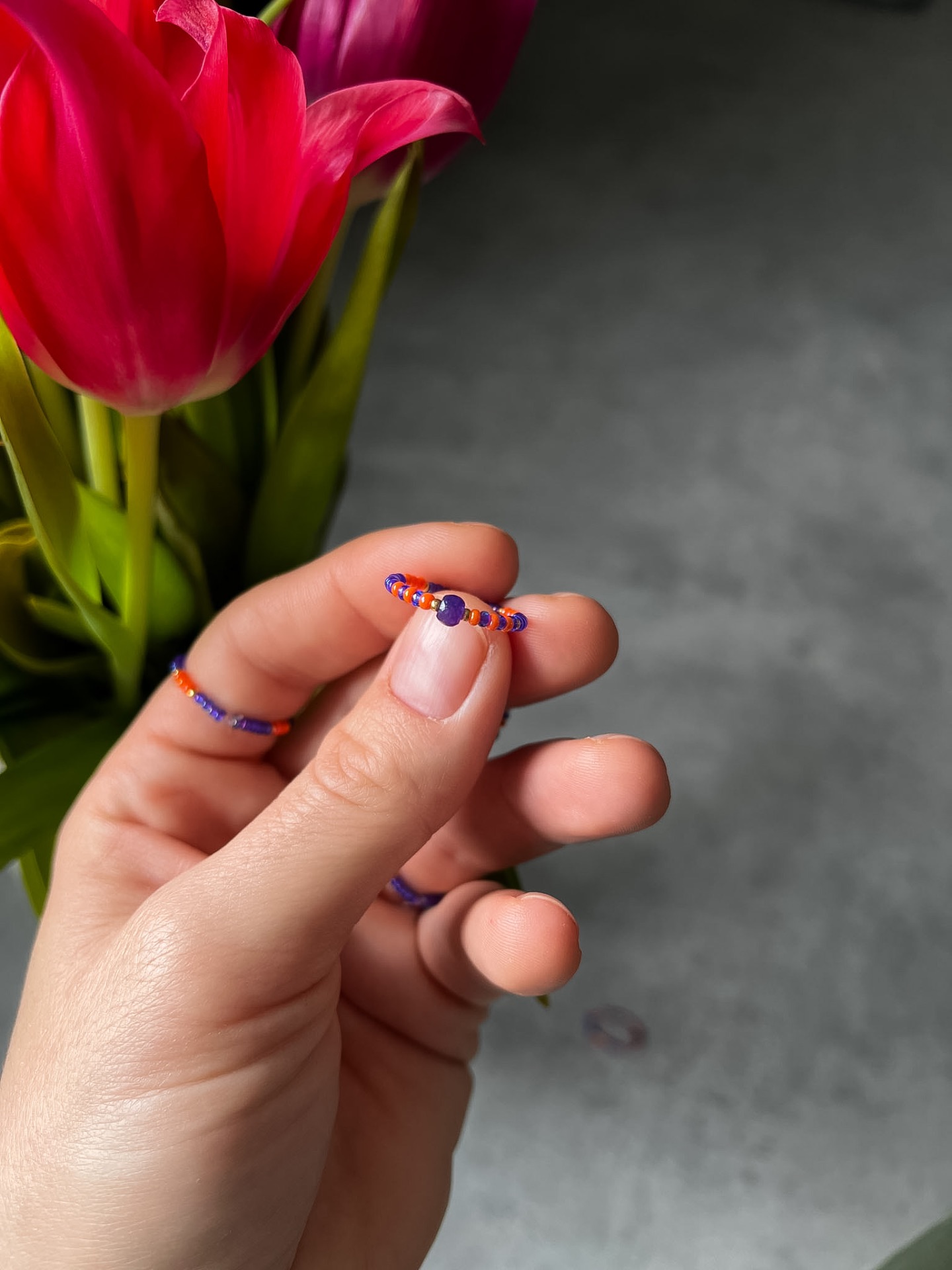Prstýnek je navlečen na pružném, ale zároveň pevném elastomeru.