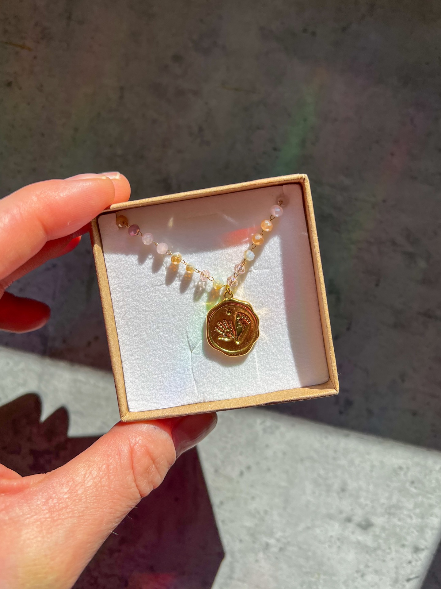 Tento jemný korálkový řetízek je osobní připomínka nejkrásnější role v životě.