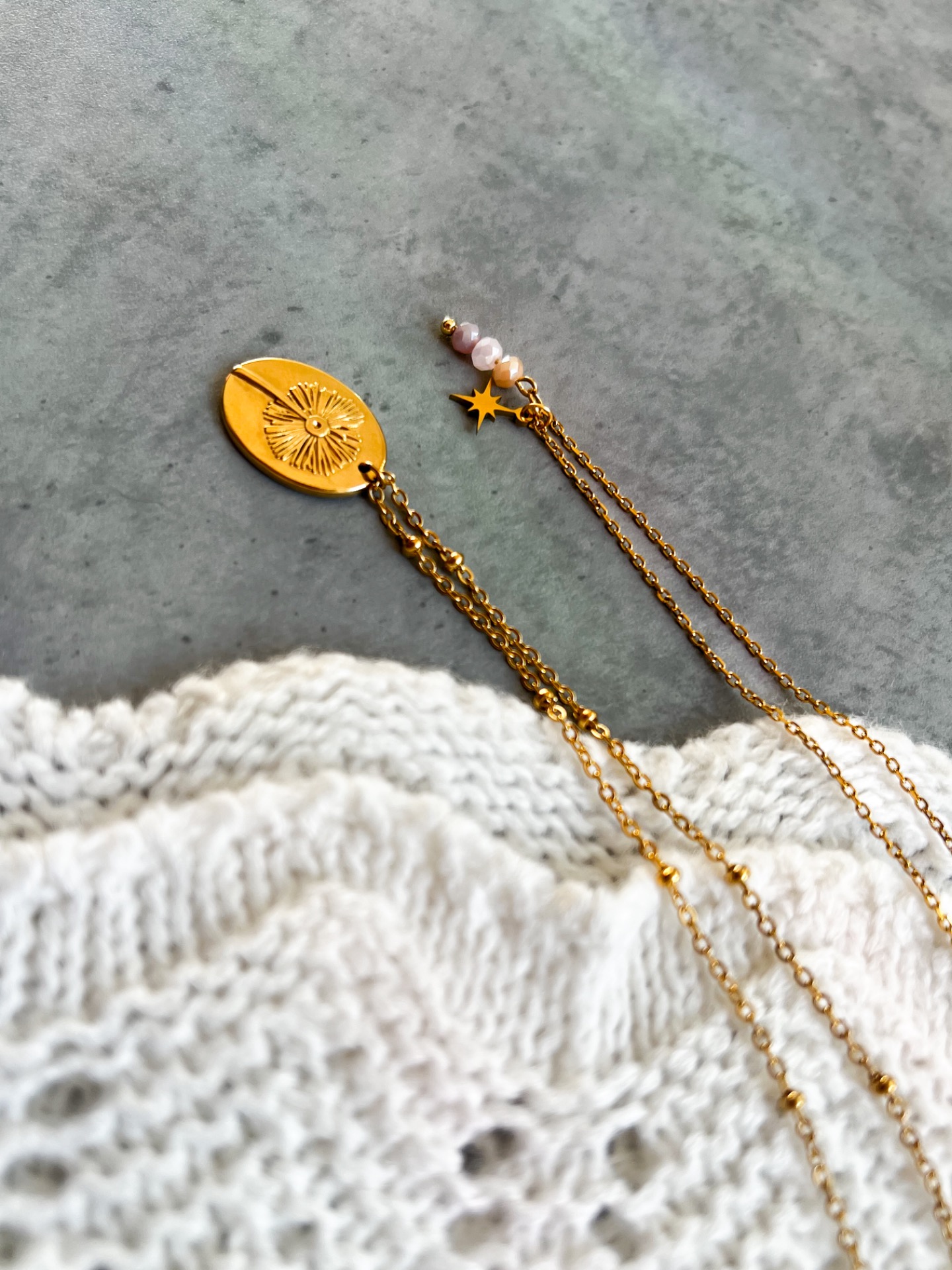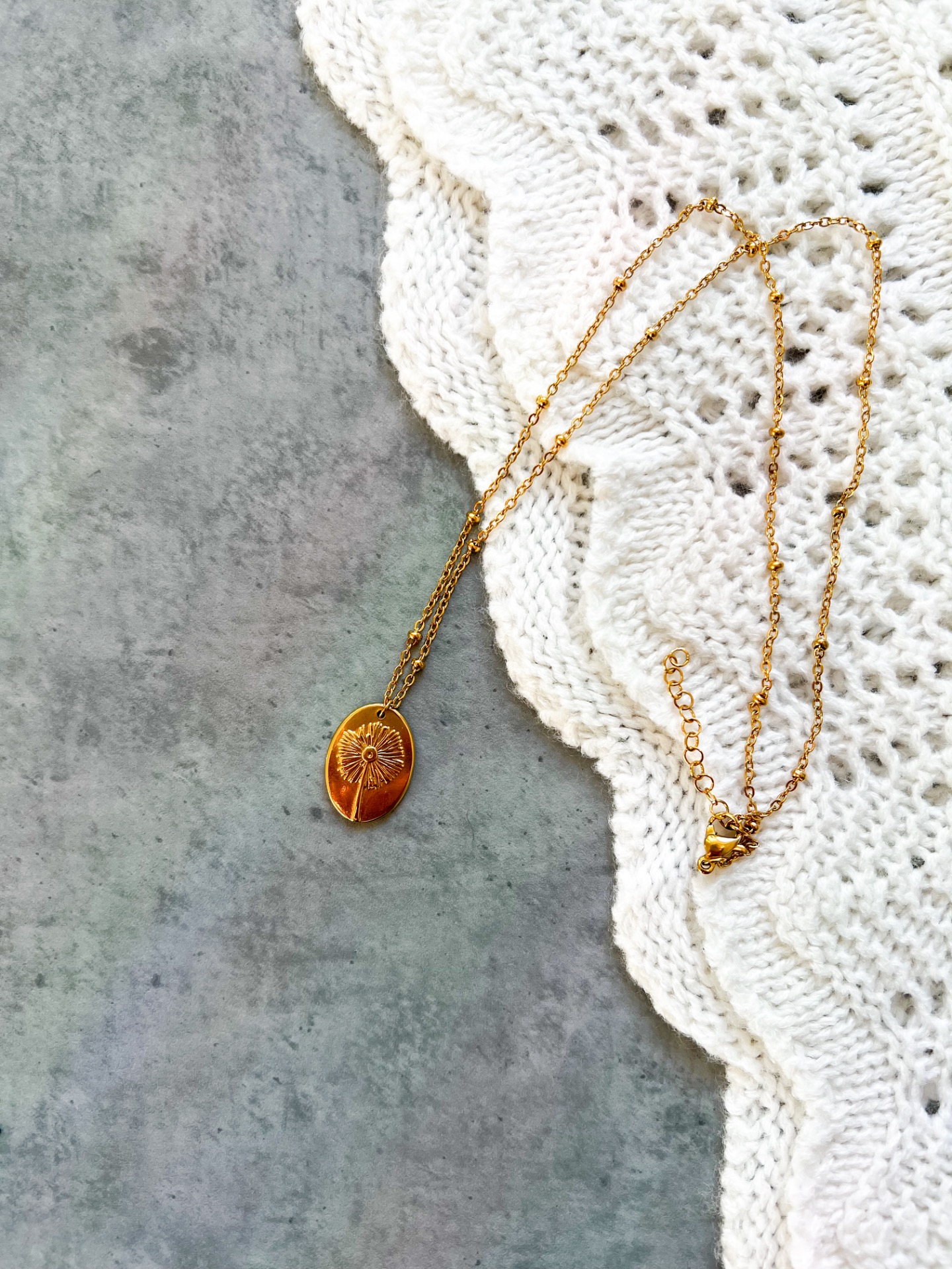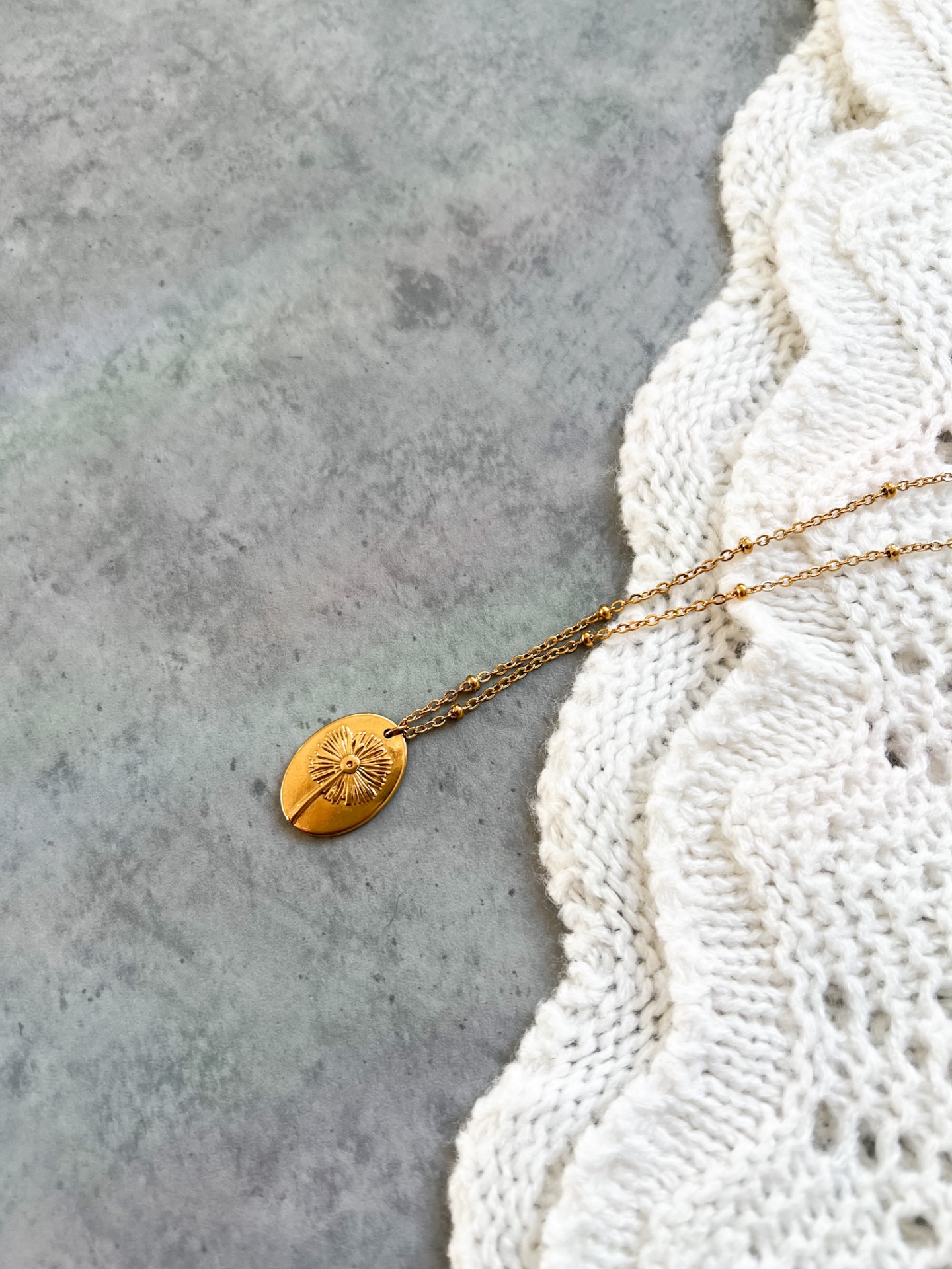 Jemný náhrdelník s medailonkem s motivem pampelišky, ideální k vrstvení.
