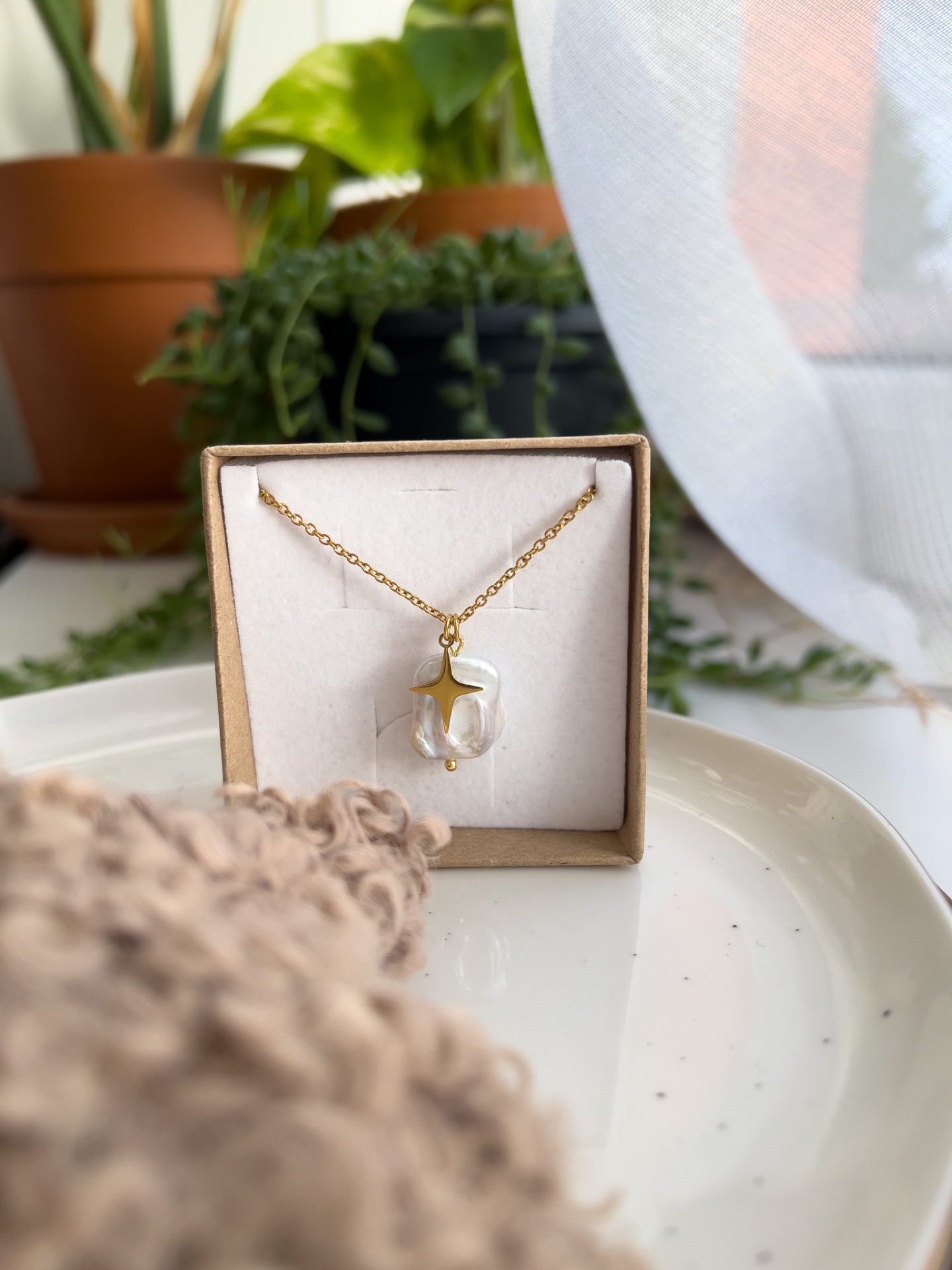 Perla působí nadčasově, hvězda zase připomíná, že každá z nás má vlastní cestu a vlastní světlo. Náhrdelník nosí lehce a snadno ho zkombinuješ s čímkoli – od jednoduchého trička až po večerní outfit.